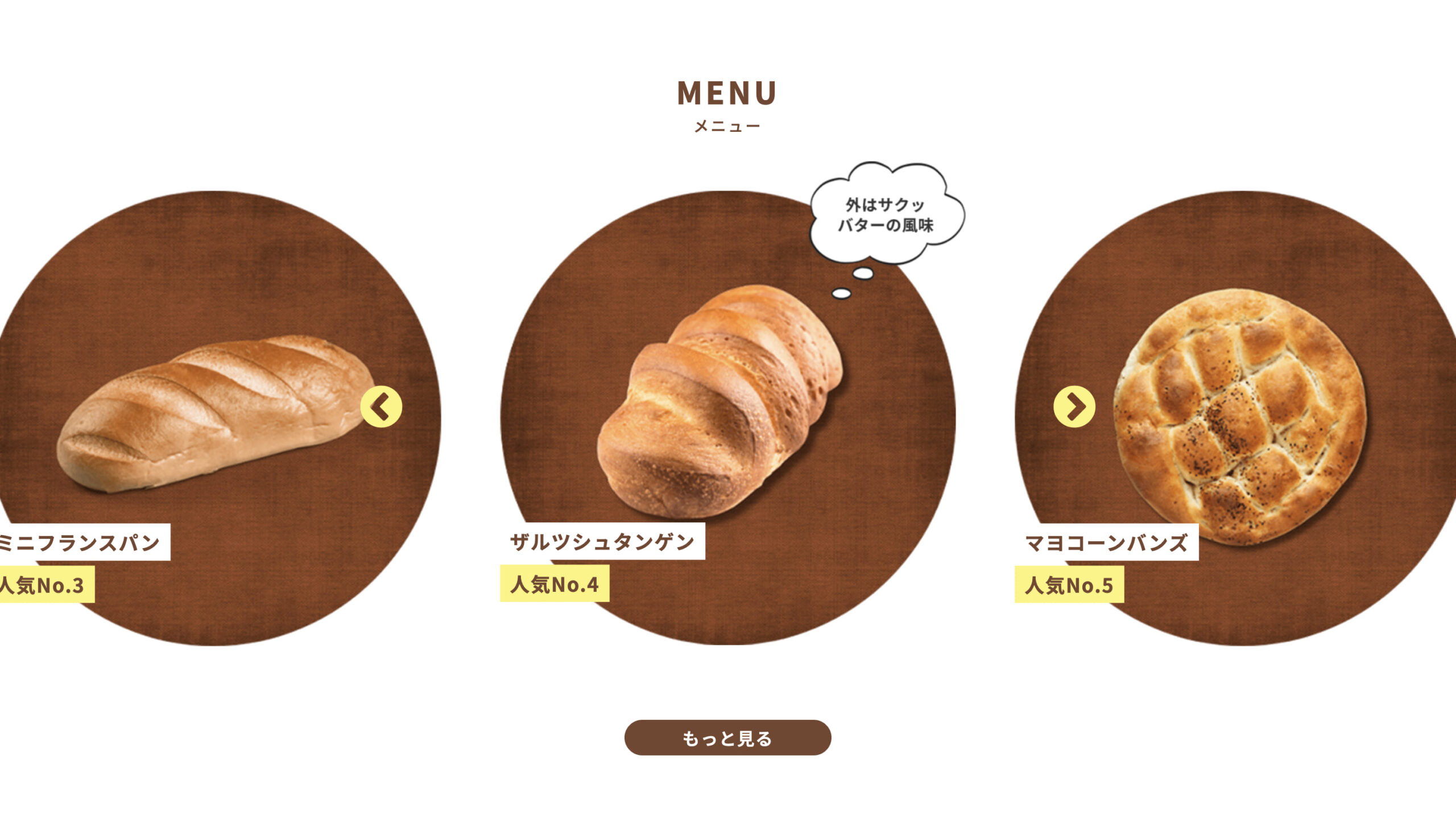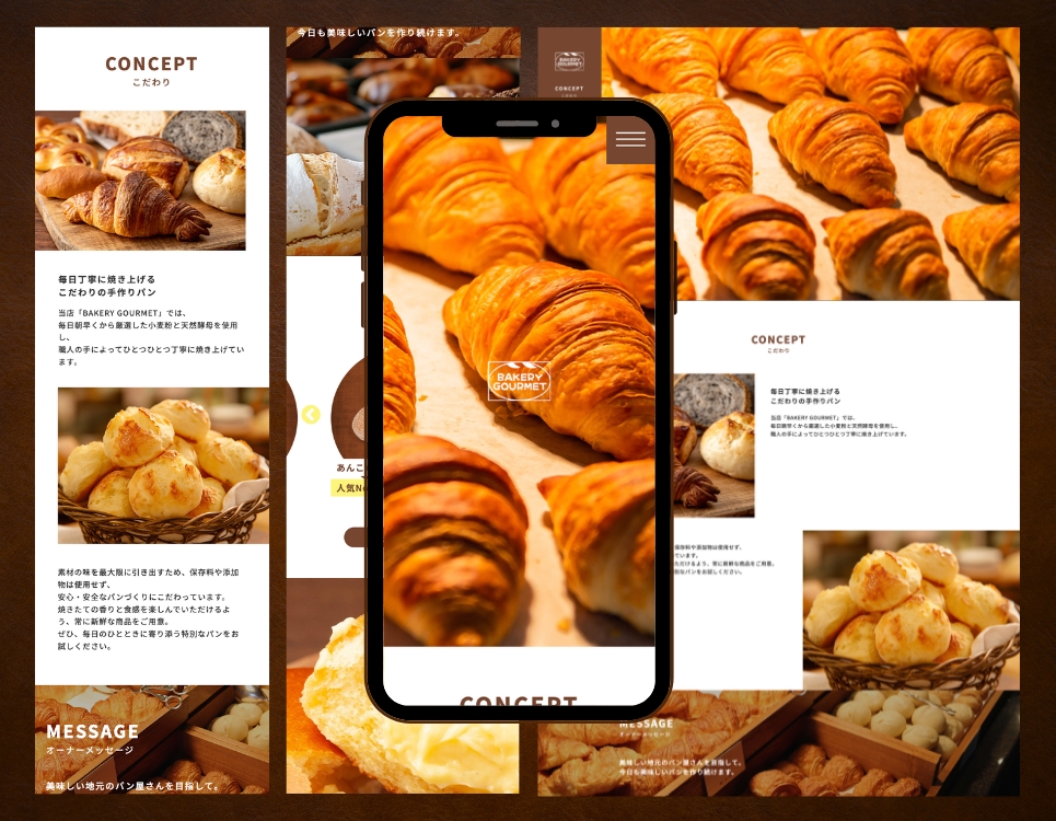 写真が自然と引き立つ余白設計で、パン一つひとつの魅力が伝わる雰囲気にしています。